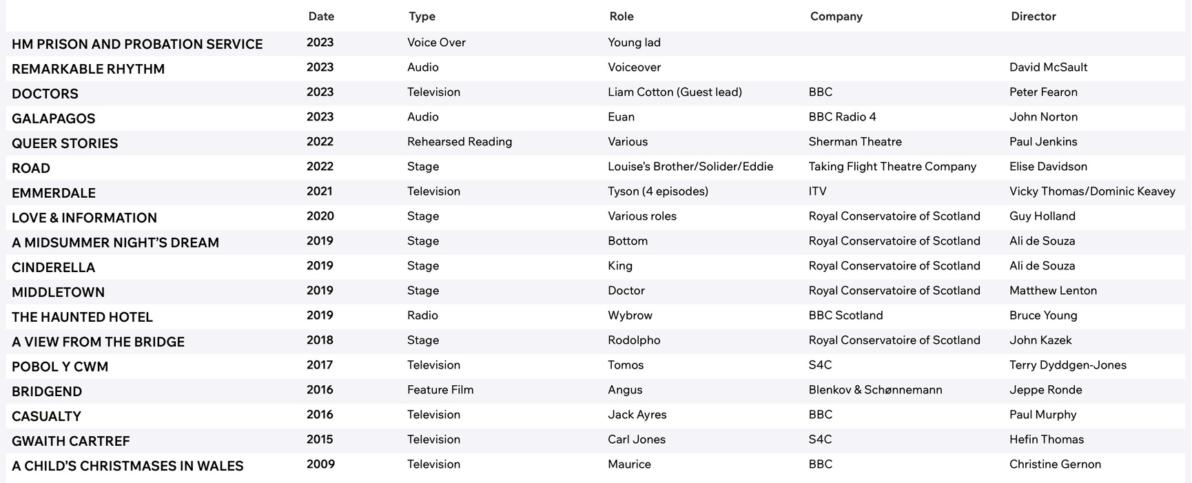 Jamie is from the South Wales Valleys and graduated from the Royal conservatoire of Scotland with a BA (Hons) in Acting.
